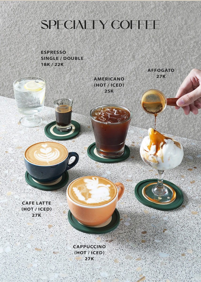 The beverage menu strengthens the overall concept, especially for café lovers. Coffee-based drinks like Charcoal Coffee, Es Kopi Susu Aren, and Es Karamel highlight a modern twist on classic flavors, while refreshing non-coffee options such as Lychee Tea balance the richer dishes. Together, these drinks feel thoughtfully paired with the food rather than added as an afterthought.